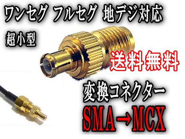 アダプタ (小) 【メール便 送料無料】 SMA(メス)→MCX(オス) 変換コネクター 変換アダプター TVアンテナの端子変換に フルセグ ワンセグ 地デジ対応 ワンセグチューナー 地デジチューナー 地デジアンテナに オス・メス要確認