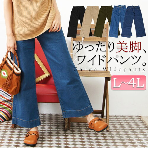 豊富なカラバリが嬉しい♪ 大きいサイズ レディース ボトムス パンツ ロングパンツ ワイドパンツ 美脚パンツ ロング 長ズボン シンプル 無地 春服 夏服 秋服 冬服 L LL 2L 3L 4L XL XXL LLサイズ 11号 13号 15号 17号 ネイビー 紺 ブルー ブラック 黒 black ベージュ カーキ