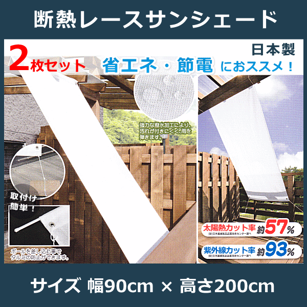 全品ポイント5倍&クーポン★断熱レースサンシェード【日本製】【幅 90cm×高さ 200cm】2枚セット【sybp】【w4】日よけ シェード オーニング サンシェード シェードオーニング 日よけスクリーン ベランダ 日よけシェード ガーデン【あす楽】【HLS_DU】